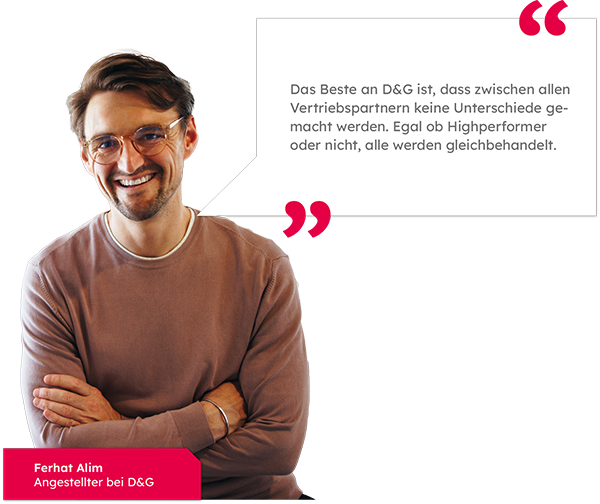 Bereit für eine spannende berufliche Veränderung? Bei D&G sind wir immer auf der Suche nach motivierten Verkaufstalenten, die gemeinsam mit uns den Vertrieb unserer Partnerprodukte vorantreiben möchten. Egal, ob du bereits Vertriebsprofi bist oder einen Quereinstieg in Betracht ziehst – bei uns findest du die perfekte Plattform, um durchzustarten!